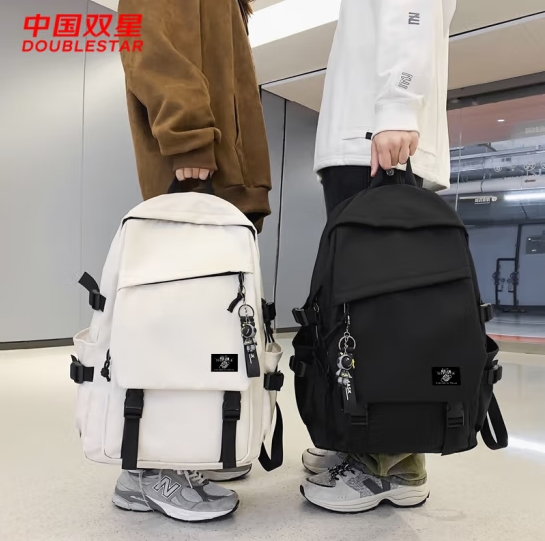 双星背包男士双肩包初高中大学生书包大容量休闲防泼水电脑旅行包 黑色款